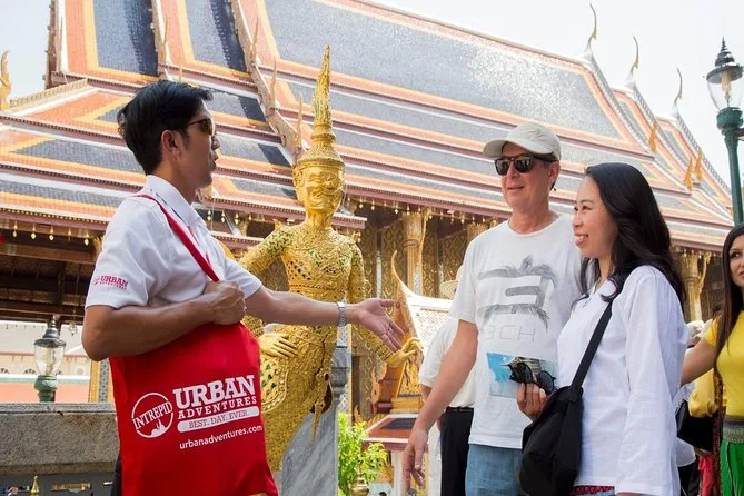 Dein Tag umfasst geführte Spaziergänge durch Palastanlagen und Tempel mit allen Eintrittsgeldern, eine Longtail-Bootsfahrt auf dem Chao Phraya und den Kanälen mit lokalem Guide sowie Insider-Tipps zu Sehenswürdigkeiten und Essen – alles ab Sanam Chai MRT Station im Stadtzentrum.
