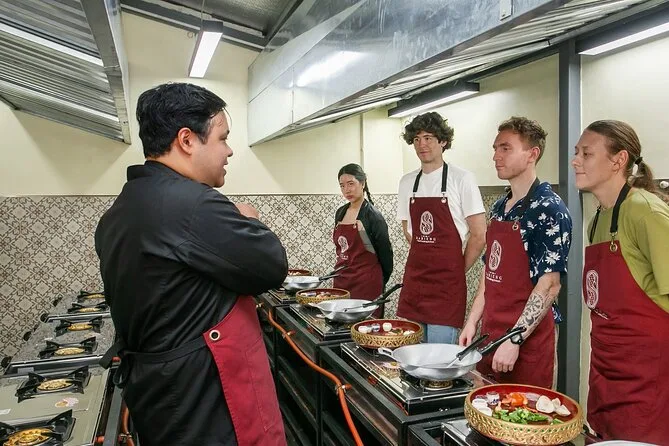 Erkunde mit einer lokalen Köchin einen der belebtesten Märkte Bangkoks, lerne in entspannter Atmosphäre Klassiker wie Tom Yum Goong und Pad Thai zu kochen und düse anschließend per TukTuk zurück – alle Zutaten inklusive. Freu dich auf viel Spaß, echte Profi-Tipps und unvergessliche Aromen.