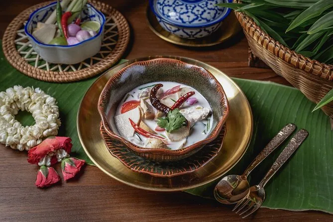 Dein Tag beinhaltet private Transfers zwischen den Stationen (inklusive einer ikonischen TukTuk-Fahrt zurück), alle Zutaten für vier klassische Thai-Gerichte plus Dessert, Wasserflaschen während des gesamten Kurses, die Nutzung aller Kochutensilien – und das, was du kochst, isst du anschließend als Mittagessen, bevor es wieder hinaus in Bangkoks geschäftige Straßen geht.