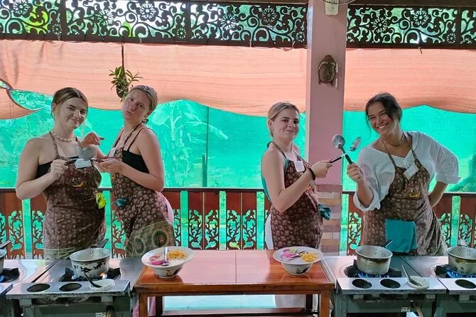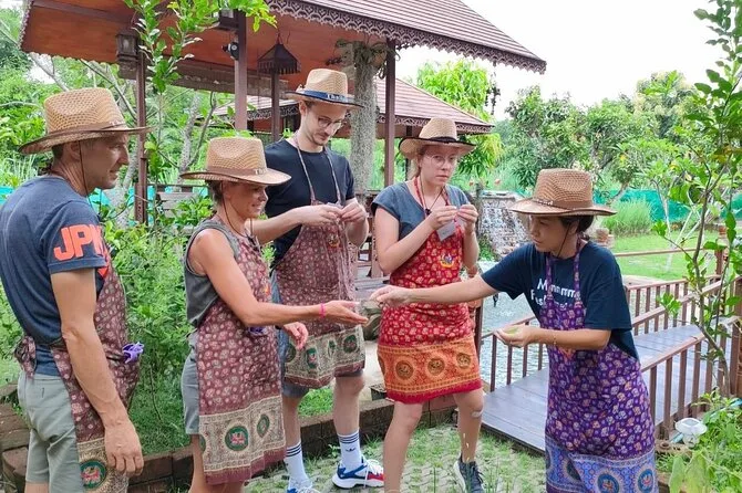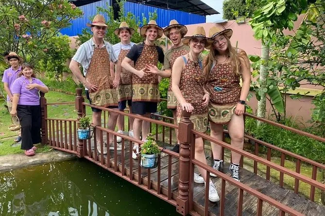 Dein Abend beinhaltet die Abholung vom Hotel in der Altstadt von Chiang Mai, alle frischen Zutaten für sechs selbst gewählte Gerichte (mit fleischlosen oder glutenfreien Alternativen, falls nötig), praktische Anleitung von einem englischsprachigen Kochlehrer, der dir ohne Vorwürfe hilft, Fehler zu korrigieren (vertrau mir), Zeit zum Erkunden eines lebendigen Marktes und eines ruhigen Bio-Gartens, in dem du Kräuter und Gemüse pflückst, die du später wirklich verwendest. Du isst alles selbst zubereitet – entweder draußen am See oder drinnen – und bekommst Rezepte zum Mitnehmen sowie Getränke wie Tee oder Kaffee, bevor es zurückgeht, satt und vielleicht ein bisschen stolz.