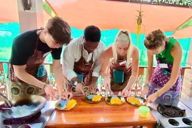Das Kochen selbst war ein herrliches Chaos. Jeder bekam seinen eigenen Wok (Gott sei Dank), so musste niemand so tun, als wüsste er, was er tut. Meine Pad-Thai-Nudeln klebten am Anfang zusammen, doch May kam sofort angerannt und rettete sie mit einem Spritzer von irgendwas Fischigem – „Nicht zu viel!“, warnte sie. Die Luft füllte sich mit Knoblauch und Chili, draußen hörte man die Frösche am See quaken. Wir aßen unsere Kreationen in einem offenen Pavillon mit Blick auf den Garten, zum Nachtisch gab’s Klebreis mit Mango (davon träume ich noch). Hätte nie gedacht, dass ich so stolz auf meine ungleichmäßigen Frühlingsrollen sein würde.