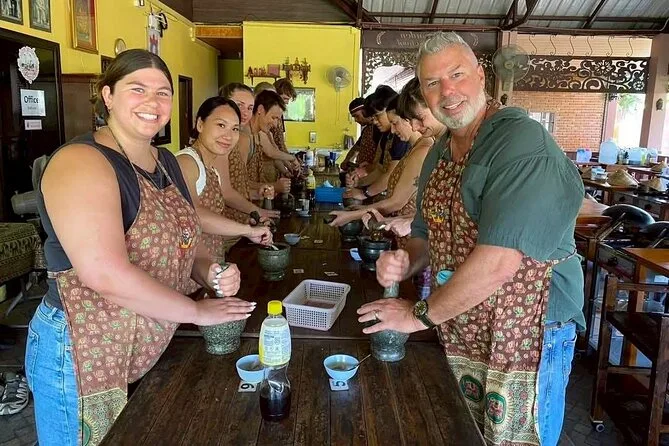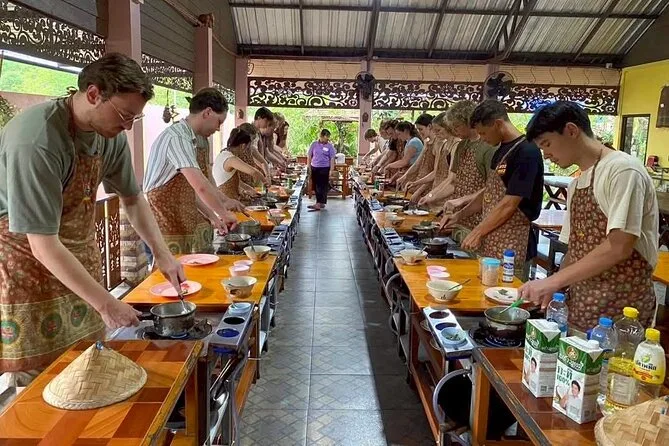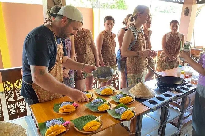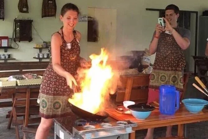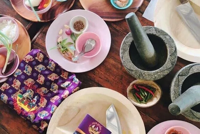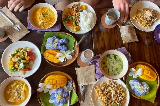 Erkunde mit einem lokalen Guide einen Markt in Chiang Mai, pflücke frische Kräuter im Bio-Garten und koche sechs Thai-Gerichte ganz nach deinem Geschmack – in deinem Tempo. Wähle dein Menü, bestimme die Schärfe, entspanne am See oder im klimatisierten Essraum und nimm Rezepte sowie Geschichten mit, die du nicht erwartet hast.