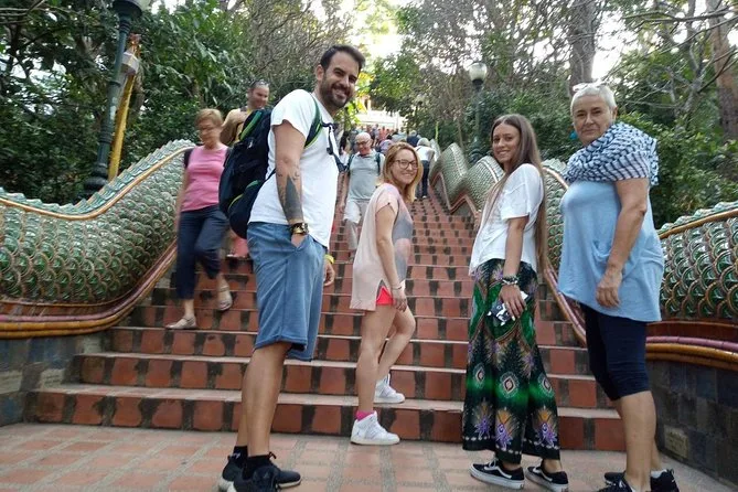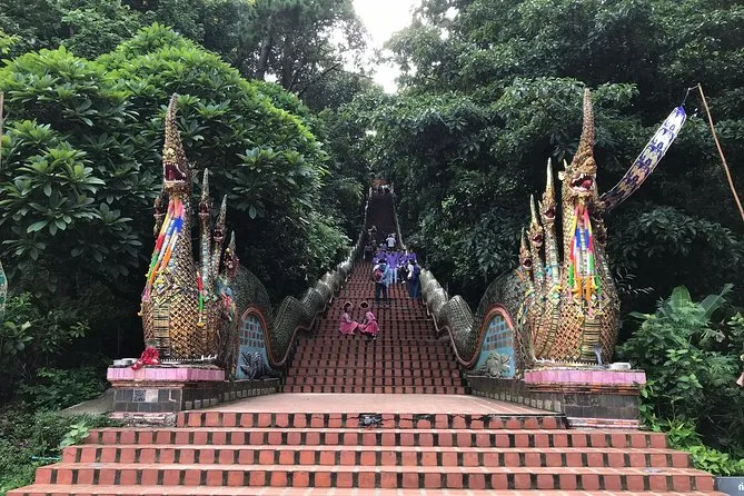 Begleite einen lokalen Guide auf den Stufen des Doi Suthep, erlebe eine Mönchssegnung, genieße ein Mittagessen in einem kleinen Lokal und schwimme oder klettere am „Sticky“ Bua Tong Wasserfall – mit frischer Bergluft, tollen Stadtblicken und ehrlichem Lachen unterwegs.