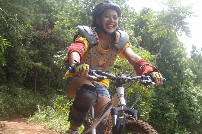 Starte deinen Tagesausflug in Chiang Mai mit einer Dschungelwanderung entlang von Wasserfällen, besuche ein Hmong-Dorf und genieße ein lokales Mittagessen. Danach geht’s mit dem Mountainbike rasant bergab durch die Wälder von Doi Suthep–Pui, bevor du am See entspannst, isst und vielleicht sogar schwimmst – erschöpft, aber glücklich.