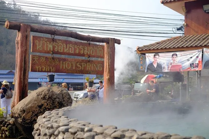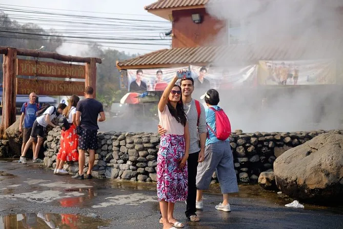 Mit klebrigen Händen von einer Tüte gegrillter Bananen beobachtete ich, wie Dampf aus der heißen Quelle Mae Kachan aufstieg. Unsere Reiseleiterin Nok reichte mir ein Ei, das direkt im sprudelnden Wasser gekocht wurde. Sie lächelte, als ich zögerte – wer isst schon um 8 Uhr morgens ein Ei auf einem Parkplatz? – aber ehrlich gesagt war es genau das Richtige. Die Fahrt von Chiang Mai dauert lange, vielleicht drei Stunden, doch mit Noks Geschichten über ihre Kindheit hier und den kleinen Straßenschreinen, die ich allein nie bemerkt hätte, verging die Zeit wie im Flug.
