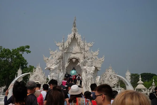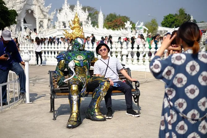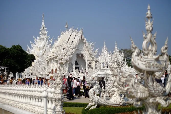 Dein Tag umfasst die Abholung und Rückfahrt vom Hotel in Chiang Mai, Wasserflaschen während der gesamten Tour, Eintritt zu allen Sehenswürdigkeiten wie Wat Rong Khun und Hall of Opium Museum, alle Aktivitäten inklusive der Bootsfahrt auf dem Mekong, ein traditionelles thailändisches Mittagsmenü (vegetarisch auf Wunsch), sowie eine Reiseversicherung – alles begleitet von einem englischsprachigen Einheimischen, der die Tour authentisch und lebendig gestaltet.