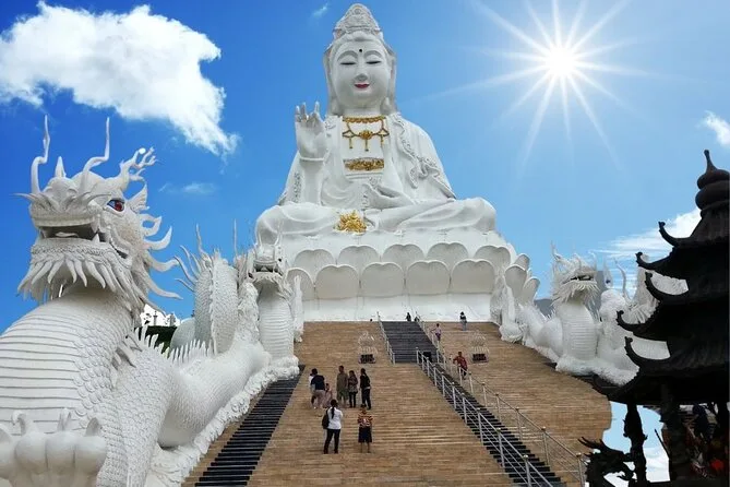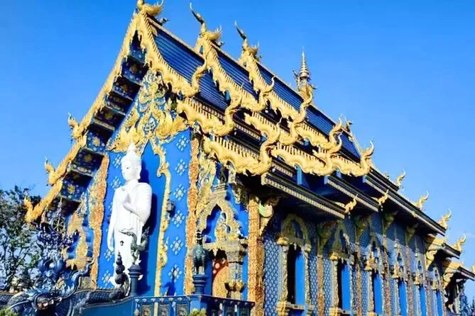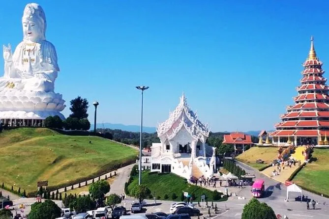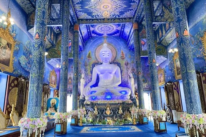 Erkunde Chiang Rais strahlenden Weißen Tempel, tauche ein in die tiefblauen Farben von Wat Rong Seur Ten, besteige den Großen Buddha für grandiose Aussichten und schlendere durch die duftenden Felder der Singha Teeplantage. Mit einem lokalen Guide, der Geschichten und vielleicht den ein oder anderen Lacher teilt, inklusive Mittagessen und Abholung in Chiang Mai – ein Tag voller Farben und Überraschungen.