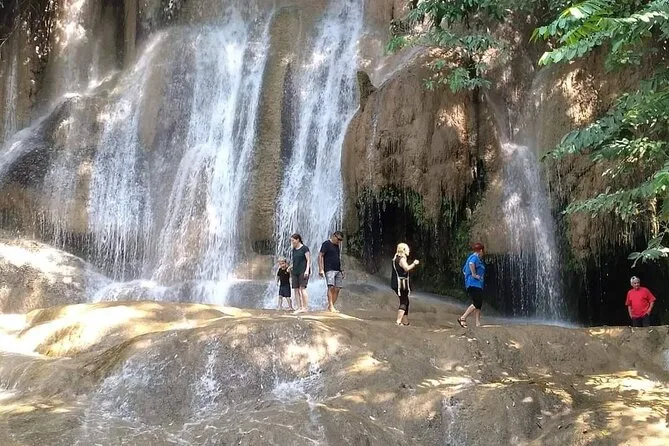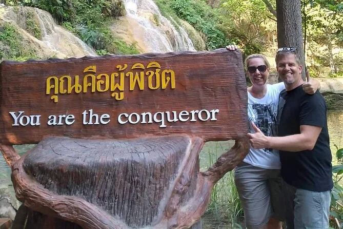 Dein Tag beginnt mit der Abholung in Bangkok in einem klimatisierten Fahrzeug, geführt von einem englischsprachigen Guide, der deine kleine Gruppe (bis zu 10 Personen) begleitet. Die Eintrittspreise für das JEATH Kriegsmuseum und die Erawan Wasserfälle sind inklusive – außerdem gibt es an Bord Trinkwasser, bevor es nach einem erlebnisreichen Tag zurückgeht.