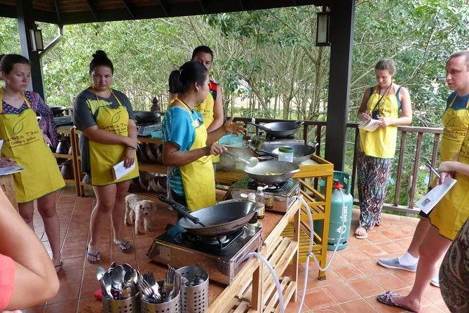 Dein Tag umfasst die Hin- und Rückfahrt mit dem Songtaew entlang der Hauptstraße von Koh Lanta, alle Zutaten für deine gewählten thailändischen Gerichte (inklusive vegetarischer und veganer Optionen), praktische Anleitung von einer erfahrenen lokalen Köchin in einem Teakholzhaus nahe Long Beach, Wasser sowie Kaffee oder Tee und saisonale Obstsnacks während des Kurses. Außerdem erhältst du ein Rezeptbuch zum Mitnehmen, eingepackte Reste für später zum Teilen mit Freunden oder Familie und ein Zertifikat als Beweis, dass du Currypaste selbst gemacht hast.