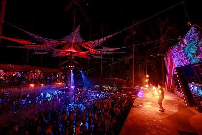 Die zweite Nacht war anders – wilder und irgendwie ruhiger, obwohl lauter (wenn das Sinn macht). Wir folgten einer Laternenkette in den Ban Tai Dschungel zur Hauptparty des Halfmoon Festivals. Drei Bühnen: Prime Stage, wo am Ende alle landeten; G Floor mit tranceartigen Sounds; The Cave, fast geheimnisvoll mit seinem niedrigen Blätterdach und pulsierenden Lichtern. Feuertänzer wirbelten Funken so nah, dass man den verbrannten Kokosnussschalen-Duft riechen konnte, Schweiß mischte sich mit Räucherwerk in der Luft. Ich stand einen Moment still in diesem ganzen Trubel und sah Gesichter im roten und grünen Licht flackern – es fühlte sich gleichzeitig riesig und intim an.