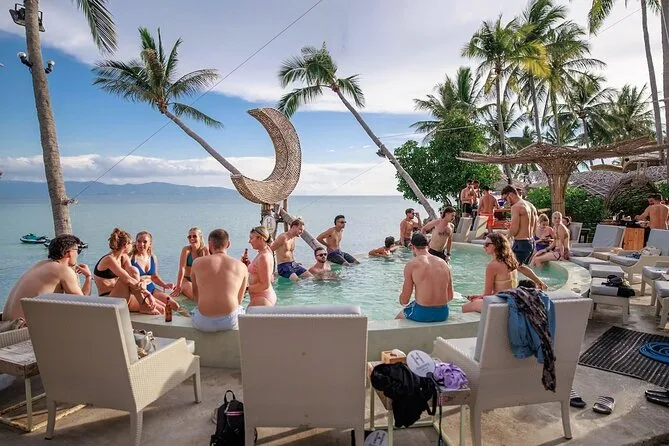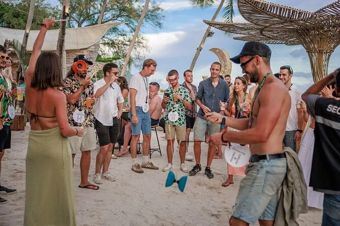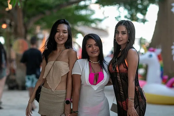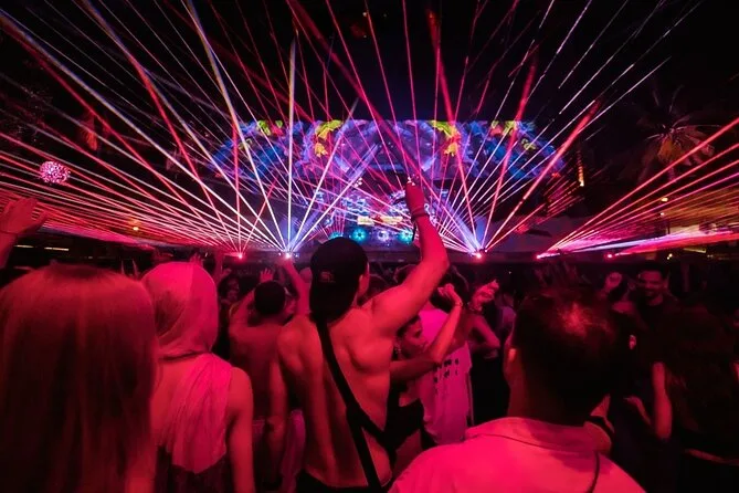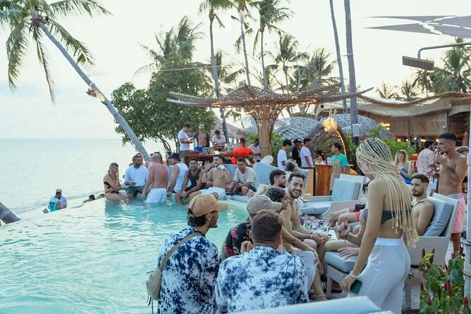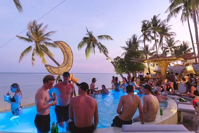 Zum Sonnenuntergang wurde es lauter – nicht nur die Musik, auch die Leute. Unsere Armbänder brachten uns einen kostenlosen Drink (ich nahm etwas Blaues, keine Reue), und dann malte mir ein Einheimischer mit Glitzerfarbe die Wange, während sein Freund versuchte, mir „Prost“ auf Thailändisch beizubringen. Wahrscheinlich habe ich es total verhauen, aber er lachte trotzdem. Die DJs legten los, als der Himmel hinter den Palmen in Pink und Orange erstrahlte. Barfuß im Sand zu tanzen lässt einen die Zeit vergessen – oder vielleicht war es einfach der endlose Beat, der alles durchzog. Irgendwann verlor ich meine Freunde aus den Augen, fand sie aber wieder am Jacuzzi, wo wir alle unter UV-Lichtern leuchteten, als wären wir in Sterne getaucht.