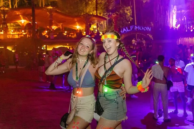 Dein Tag beinhaltet Eintrittskarten für Harmony Beach Club und Halfmoon Magic Forest je nach Option, kostenlose Drinks (ein oder zwei), eine HMF-Kappe bei 2-Tages-Tickets, Lanyard und Handfächer für 2-Tages-Tickets sowie Glitzer-Bodypaint am Harmony Beach Club – alles mit einfacher Anbindung durch öffentliche Verkehrsmittel in der Nähe.