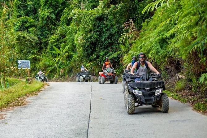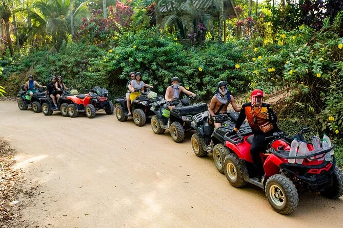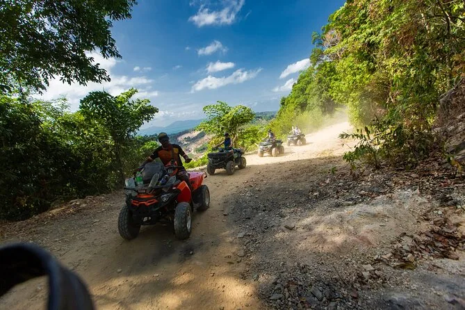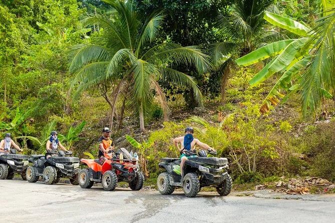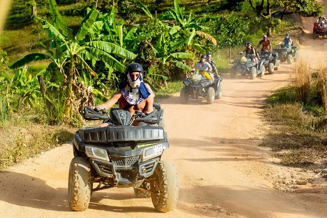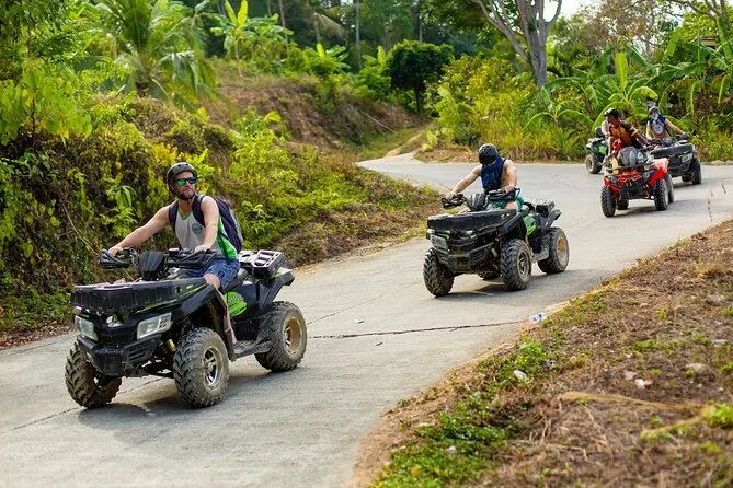 Auf dieser ATV-Tour entdeckst du Koh Samuis wilde Seite – über steile Dschungelpfade mit deinem Guide, der den Weg zeigt, mit Pausen für atemberaubende Aussichten vom Inselgipfel und einer Erfrischung an einem versteckten Wasserfall. Schmutzige Stiefel, freundliches Necken von Einheimischen und echte Momente, die du lange im Herzen behältst, sind garantiert.