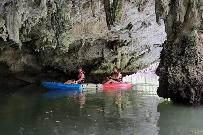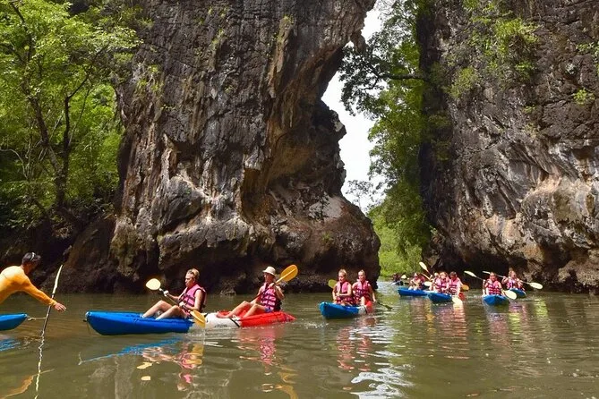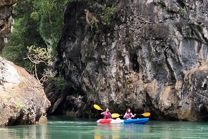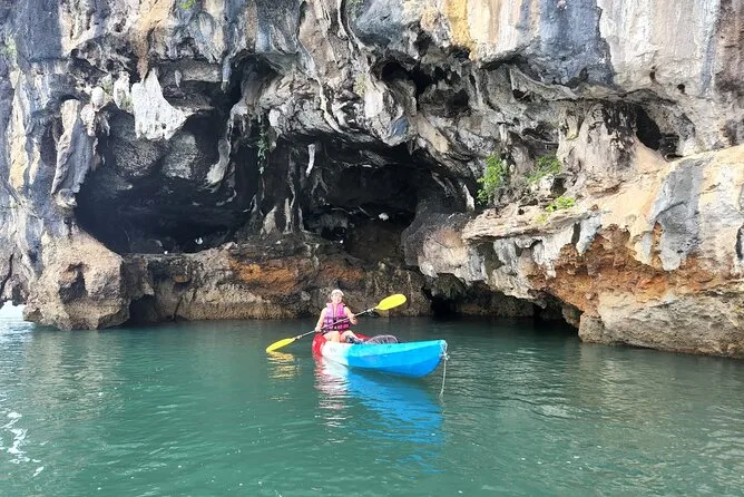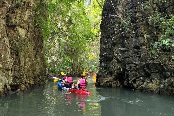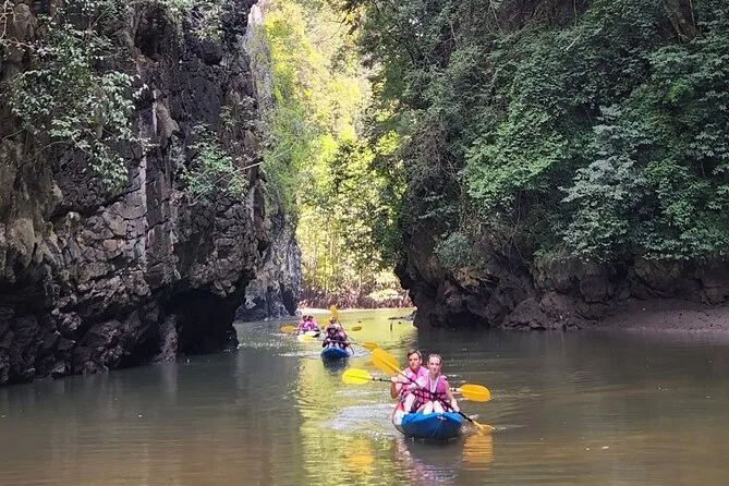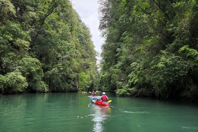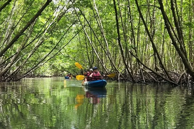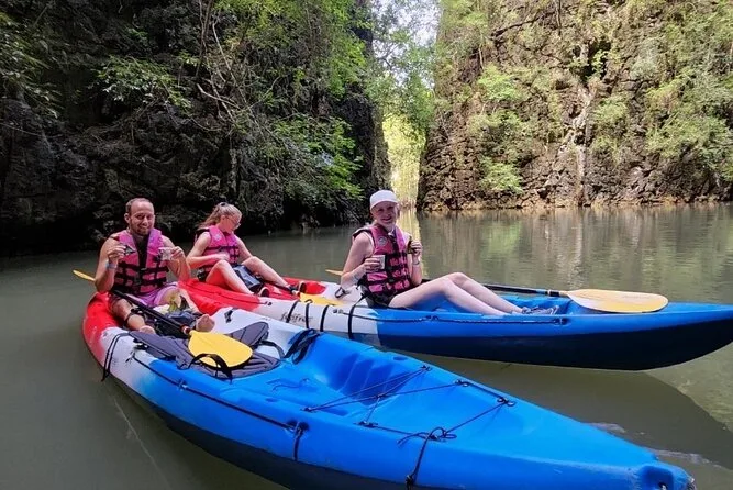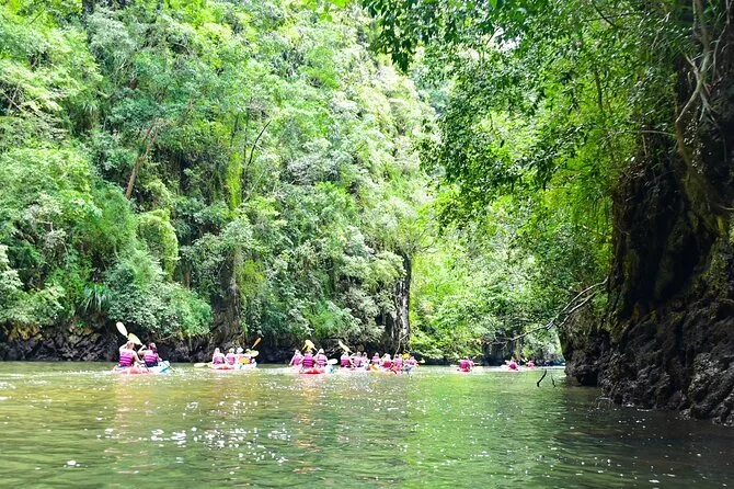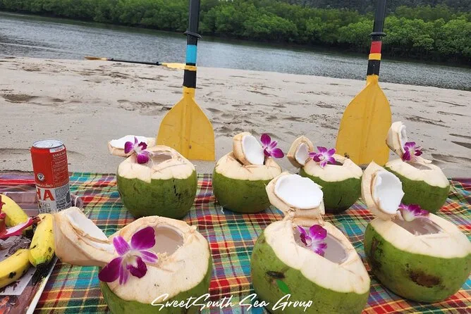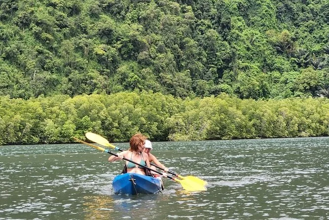 Dein Tag umfasst die Abholung vom Hotel in Krabi, die komplette Kajakausrüstung mit Sicherheitswesten falls gewünscht, die Begleitung durch einen freundlichen lokalen Guide durch Ao Thalanes Mangroven und Schluchten sowie traditionelle Thai-Desserts wie Klebreiskuchen, saisonales Obst und frische Kokosnuss vor der Rückfahrt.
