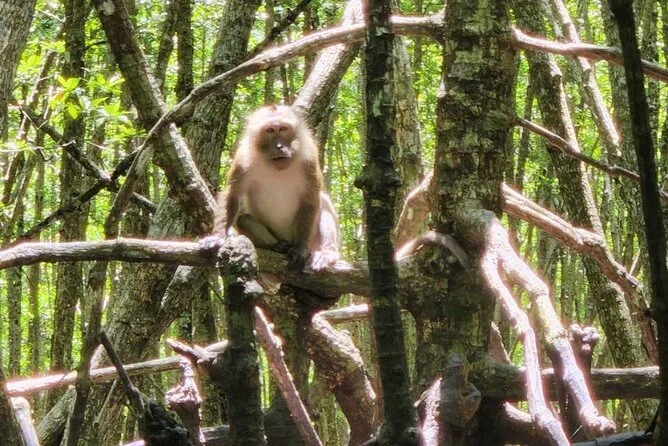 Man sieht Affen, verschiedene Vogelarten und kleine Krebse in den Mangroven.