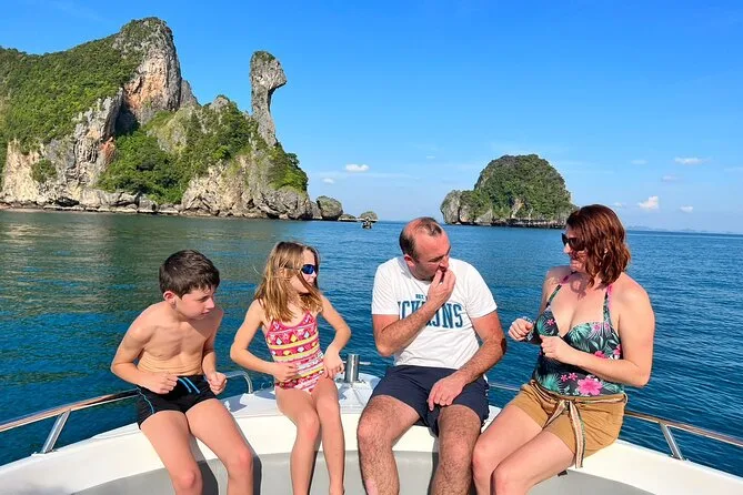 Dein privater Tagesausflug zu den Krabi Inseln umfasst die Bootsfahrt mit einem lokalen Guide, Wasserflaschen und Softdrinks während der Fahrt, Snacks und frisches Obst nach den Schwimmstopps, Zugang zu Toiletten an Bord für Komfort zwischen den Inseln sowie ein Mittagessen am Railay Beach, bevor du rechtzeitig zum Sonnenuntergang zurück an Land kommst.