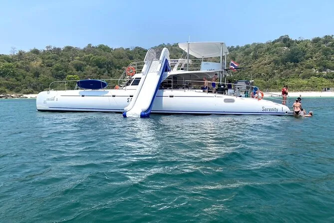 Steig an Bord eines Luxus-Katamarans in Pattaya für einen Tagesausflug zu drei tropischen Inseln – schnorchel an Korallenriffen bei Koh Phai, genieße ein thailändisches Buffet an Deck und triff freche Affen auf Koh Ped. Mit Hoteltransfer und lokalem Guide erwarten dich unvergessliche Momente und viele Geschichten zum Mitnehmen.