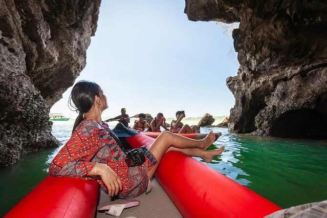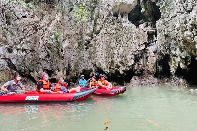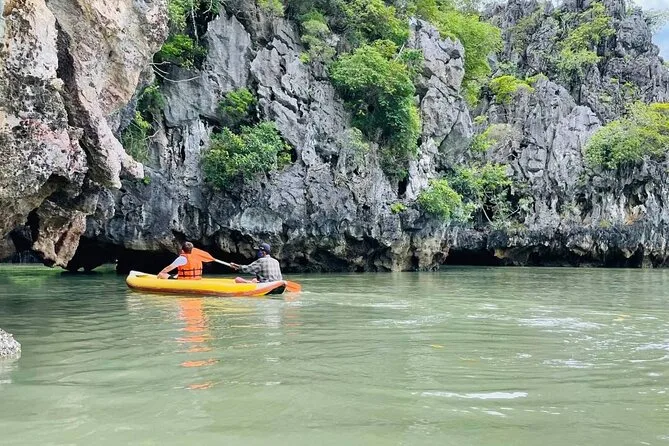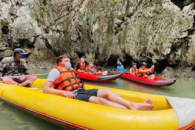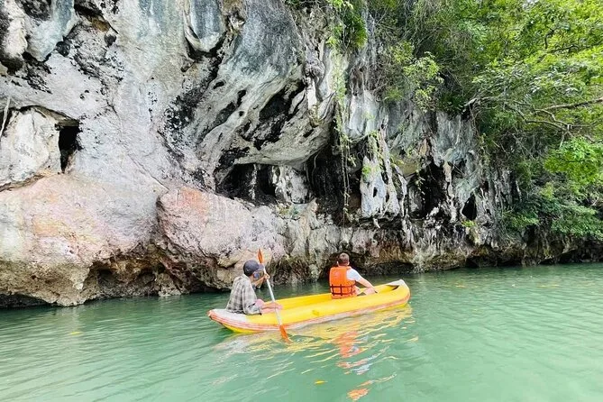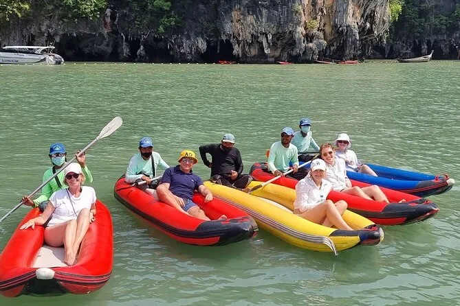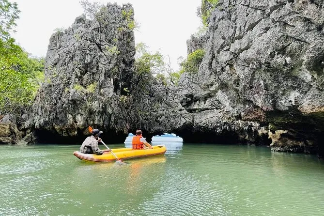 Du paddelst mit einem einheimischen Guide durch versteckte Kalksteinhöhlen in der Phang Nga Bay, schwimmst im smaragdgrünen Wasser, isst Mittag an Bord eines großen Bootes und erkundest die berühmte James Bond Island. Freu dich auf viel Spaß, Überraschungen (und vielleicht einen Sonnenbrand) sowie unvergessliche kleine Momente.