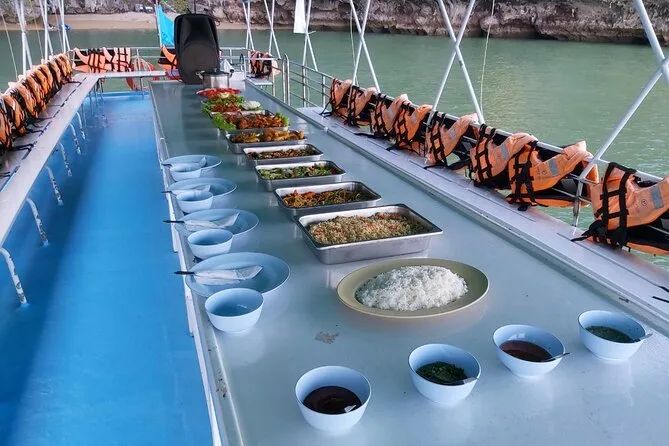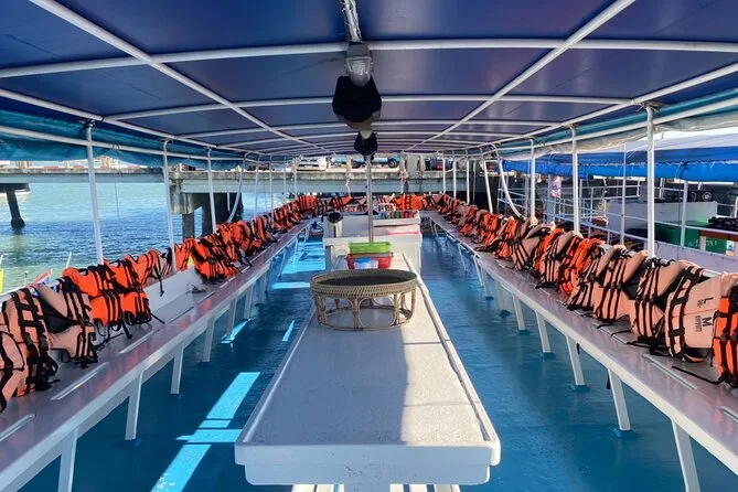 Der Morgen lief nicht ganz nach Plan – ich hatte meine Sonnencreme im Hotelzimmer vergessen und musste schnell zwei Stockwerke zurückrennen, während der Van draußen wartete (der Fahrer grinste nur und scrollte auf seinem Handy). Also ja, wir starteten etwas hektisch, aber als wir am Pier in Phuket ankamen, war das schnell vergessen. Eine salzige Brise wehte, und es gab viel Geplauder auf Thai und Englisch, während alle an Bord des großen zweistöckigen Bootes gingen. Unsere Guide Pim verteilte Schwimmwesten mit einem Scherz, dass wir jetzt „richtig stylisch“ aussähen – sie hatte recht, ich sah aus wie eine Mango mit Armen.