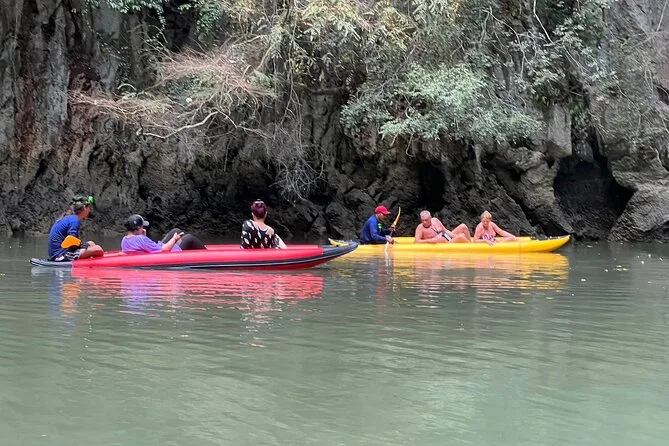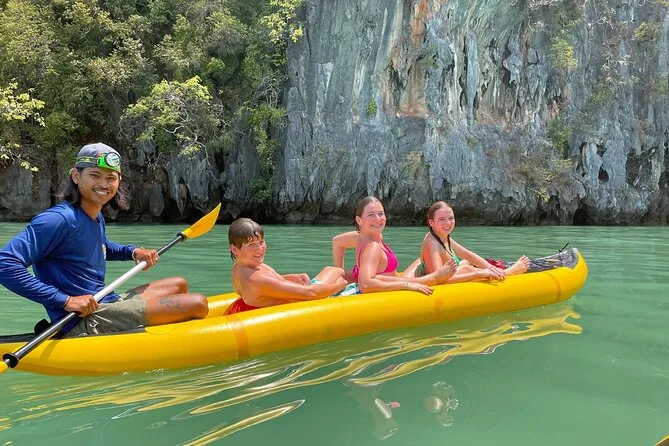Du paddelst mit deinem Guide durch versteckte Meereshöhlen in der Phang Nga Bay, gleitest in geheime Lagunen, wo Affen dich beobachten, und besuchst James Bond Island, wenn die meisten Touren schon weg sind. An Bord gibt es Mahlzeiten, der Hoteltransfer ist inklusive – lach viel, entdecke neue Geschmäcker und staune, wenn die Dämmerung über der Bucht hereinbricht.