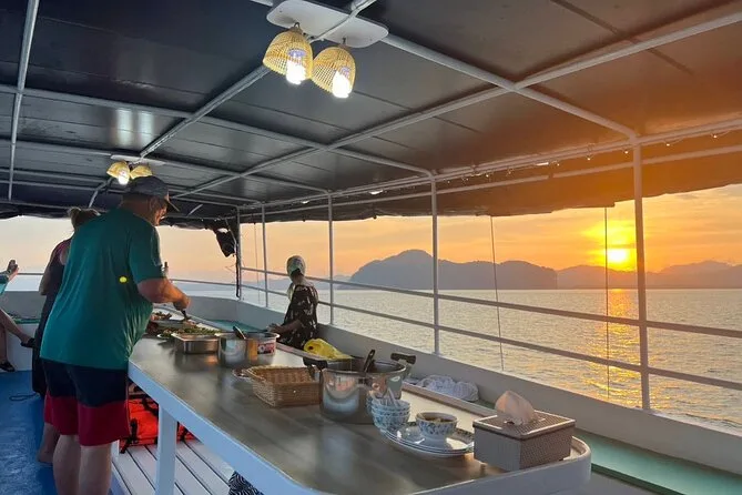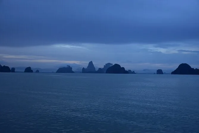 Schon gleiteten wir an den beeindruckend hohen Klippen der Phang Nga Bay vorbei, als unser Guide Lek mir eine kalte Wasserflasche reichte und verschmitzt grinste, als hätte er ein Geheimnis. Das Boot war größer als gedacht – genug Platz, um sich entspannt zurückzulehnen oder einfach am Geländer zu lehnen und zuzusehen, wie das Wasser von leuchtendem Grün zu fast silbrig wechselte, während die Sonne langsam unterging. Ich hatte das Frühstück ausgelassen (man riet dazu, nicht viel zu essen) und war ehrlich gesagt froh, denn die erste Mahlzeit an Bord war viel besser als erwartet – würziger Reis, etwas mit Zitronengras und frisches Obst, das schmeckte, als wäre es gerade gepflückt worden. In der Luft lag ein leichter Duft von Seetang, vermischt mit dem Dieselgeruch des Motors – irgendwie beruhigend.