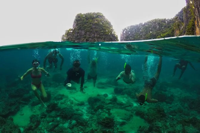 Dein Tag umfasst Hotelabholung oder Treffpunkt-Transfers ab Krabi oder Ao Nang, alle Nationalparkgebühren, geführte Touren mit zertifizierten lokalen Guides inklusive Sicherheitseinweisungen vor dem Schnorcheln (Ausrüstung inklusive), frische Obstsnacks und Getränke an Bord zwischen den Stopps sowie ein thailändisches Buffet am Strand vor der Rückfahrt am Nachmittag.