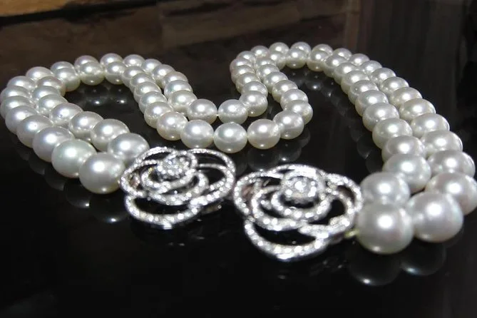 Im Anschluss besuchten wir eine Perlenfabrik. Ich hatte noch nie gesehen, wie Perlen von Hand sortiert werden – es hat etwas Beruhigendes, dem zuzusehen. Der Edelsteinladen nebenan bot allerlei funkelnde Schätze (ich blieb beim Schaufensterbummel). Wer sich für Edelsteine oder Schmuck interessiert, sollte hier unbedingt vorbeischauen.