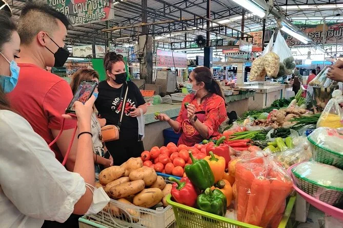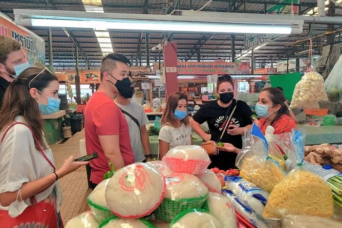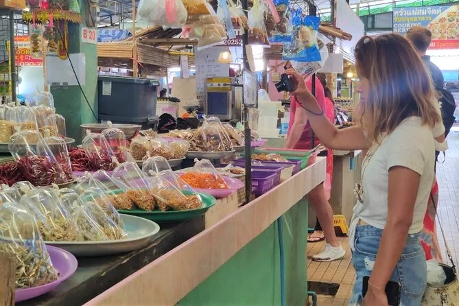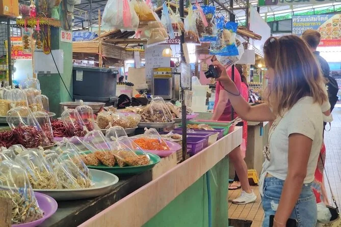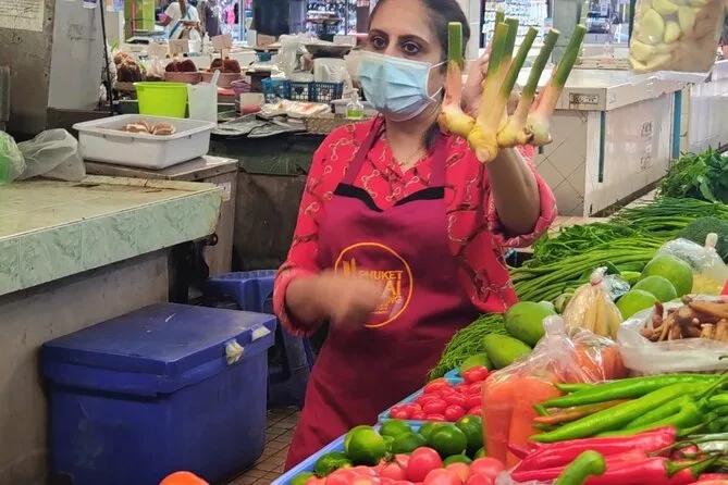 Als Erstes fiel mir der Duft auf – Zitronengras und etwas Süßes, vielleicht Mango? Kaum hatten wir die Marktstände in Phuket betreten, reichte mir unsere Guide VJ ein kleines Stück Drachenfrucht. Ich kaute noch (sie war viel weicher als gedacht), als sie auf Bündel von Kaffir-Limettenblättern zeigte und erklärte, wie man frische erkennt. Li musste lachen, als ich versuchte, „Galgant“ auf Thai auszusprechen – wahrscheinlich klang das ziemlich schief. Der Markt war nicht laut, aber überall hörte man das Murmeln von Gesprächen und das Rufen der Händler. Mir gefiel, dass niemand uns hetzte.