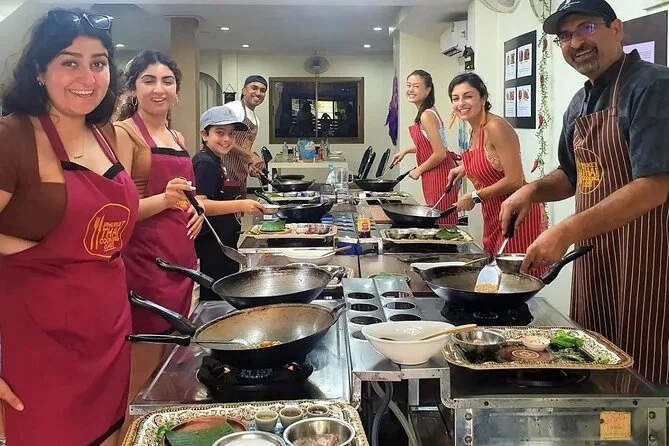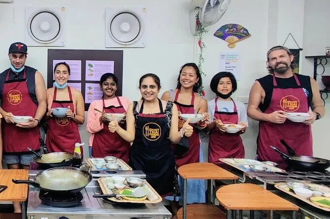 Dein Tag beinhaltet den kostenlosen Hin- und Rücktransfer ab ausgewählten Orten in Phuket (ab 2 Personen), alle frischen Zutaten für jedes Gericht – inklusive selbstgemachter Curry-Paste, eine geführte Tour über den lokalen Markt mit Früchteverkostung (je nach Kurs), unbegrenzt Wasser, Tee und Kaffee während des Kurses, private klimatisierte Kochstationen, Mittag- oder Abendessen je nach Buchungszeit und natürlich die Möglichkeit, Reste mitzunehmen. Alle Rezepte erhältst du per E-Mail, um zuhause alles nachzukochen.