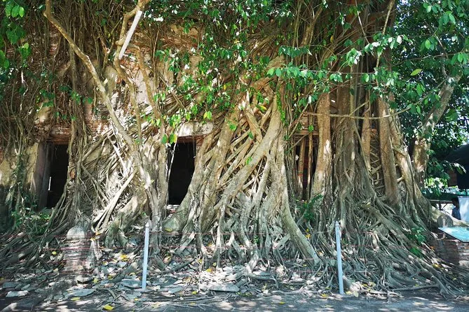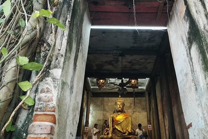 Ja, du besuchst Wat Bang Kung – einen jahrhundertealten Tempel, der von Banyan-Wurzeln umschlungen ist.