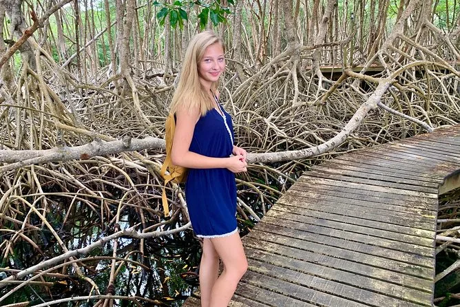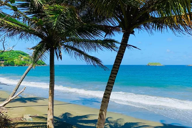 Am Nachmittag kam die Sonne zurück und strahlte über Flagstaff Hill. Die Aussicht war endlos – auf der einen Seite die Karibik, auf der anderen der wilde Atlantik. Eine Ziege spazierte einfach über unseren Weg, als gehöre ihr die Straße. Zum Schluss schwammen wir an der Englishman’s Bay, wo der Sand überall klebte, aber das war egal; ich lag im flachen Wasser und sah den Palmenblättern zu, wie sie im blauen Himmel tanzten. Nach zwölf Stunden voller Abenteuer auf Tobago hätte ich nicht gedacht, dass ich mich so entspannt fühlen würde.