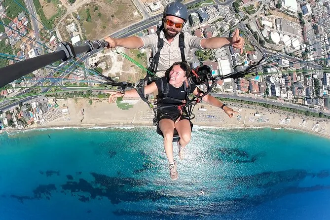 Dein Tag beinhaltet einen versicherten Gleitschirmflug über Alanya mit lizenziertem Piloten, klimatisierte Transfers zum Startplatz und zur Landestelle am Cleopatra Strand sowie Wasser und Kaffee oder Tee nach der Landung.