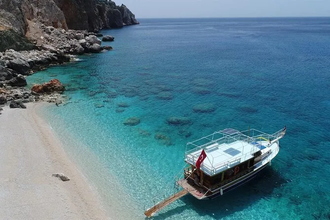 Dein Tag umfasst eine bequeme Abholung und Rückfahrt vom Hotel in Antalya, eine ganztägige Bootstour mit Stopps auf der Suluada Insel und in der Love Cave der Akseki-Bucht sowie ein frisch zubereitetes Mittagessen an Bord mit Fisch oder Hühnchen, Pasta und Salat, bevor es am Nachmittag zurückgeht.