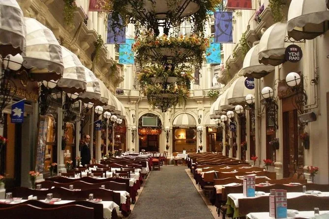 Dein Tag wird von einem lokalen Experten begleitet, der dich durch den Galataturm, die historischen Passagen der Istiklal Straße, den Çiçek Pasajı, die St.-Antonius-von-Padua-Kirche, das Pera Museum und mehr führt – alle Steuern sind inklusive, damit du dich ganz auf das Entdecken von Istanbuls Herz konzentrieren kannst.