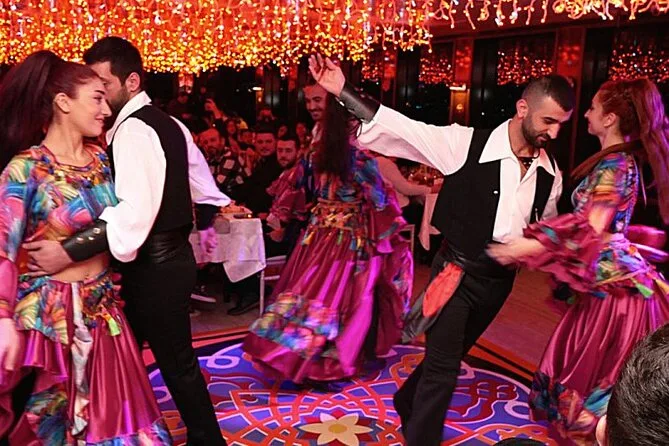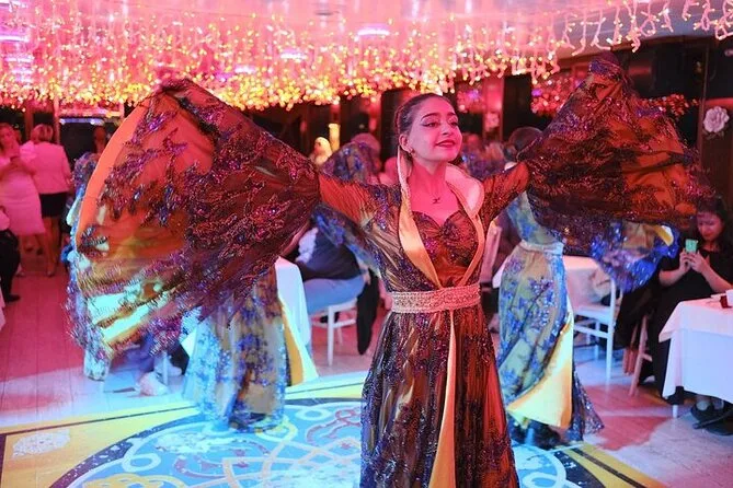 Dein Abend beginnt mit der Abholung vom Hotel im Zentrum auf der europäischen Seite Istanbuls, bevor du an Bord der Bosporus-Kreuzfahrt gehst. Genieße ein komplettes Abendessen mit unbegrenzten Softdrinks und erlebe traditionelle Live-Shows: die Zeremonie der wirbelnden Derwische, Volkstänze aus ganz Türkei (inklusive Bauchtanz), dazu Live-Musik und DJ-Unterhaltung, bevor du zurück zum Hotel gebracht wirst.