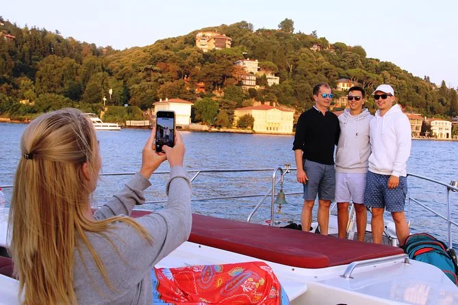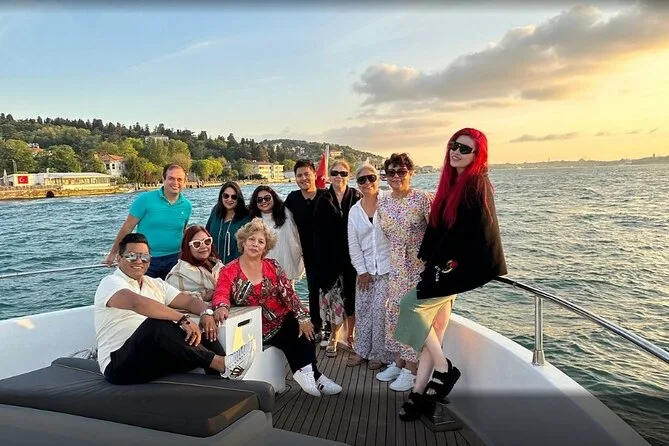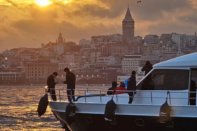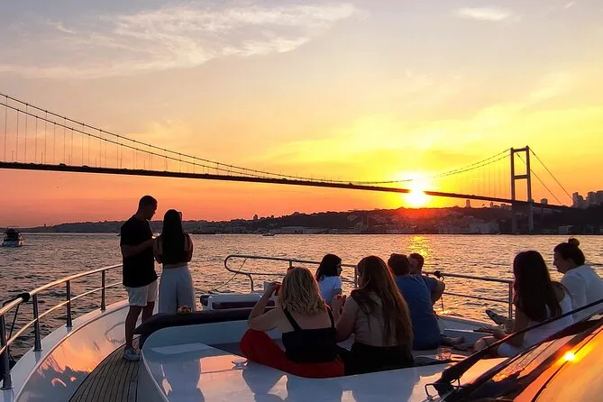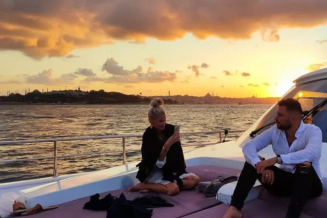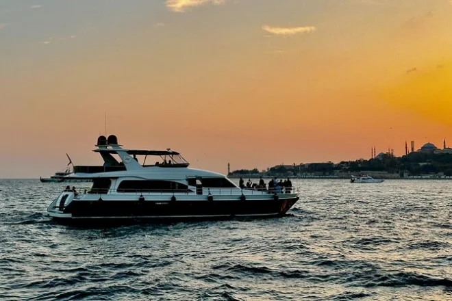 Dein Abend umfasst eine 2,5-stündige Luxus-Yachtfahrt auf dem Bosporus mit einem lokalen Guide, der spannende Geschichten erzählt, während du an berühmten Sehenswürdigkeiten wie Dolmabahçe-Palast und Mädchen-Turm vorbeifährst. Genieße frisches Obst der Saison, leckeres Baklava und Kekse, dazu Wasser, Kaffee oder Tee, während sich die Sonnenuntergangsfarben über beiden Kontinenten ausbreiten, bevor du wieder an Land gehst.
