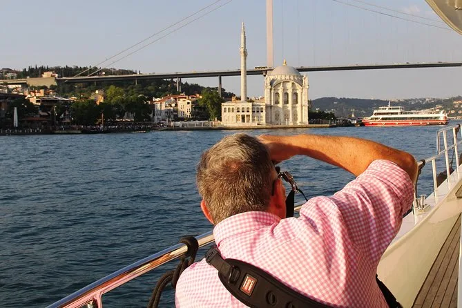 Du siehst Dolmabahçe-Palast, Rumeli-Festung, Mädchen-Turm, Galata-Turm & Brücke, Beylerbeyi-Palast und mehr entlang beider Ufer des Bosporus.