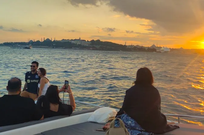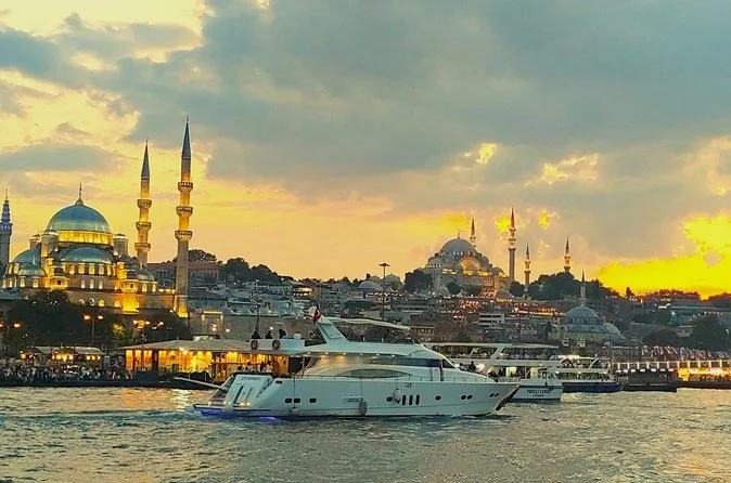 Erlebe, wie sich die Skyline Istanbuls bei einer sanften Fahrt auf dem Bosporus im Sonnenuntergang verändert – Paläste auf beiden Seiten, Baklava-Krümel im Schoß, Geschichten eines lokalen Guides zwischen Lachen und stillen Momenten. Mit Hotelabholung, Tee und Snacks wird der Abend unvergesslich.