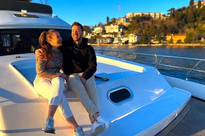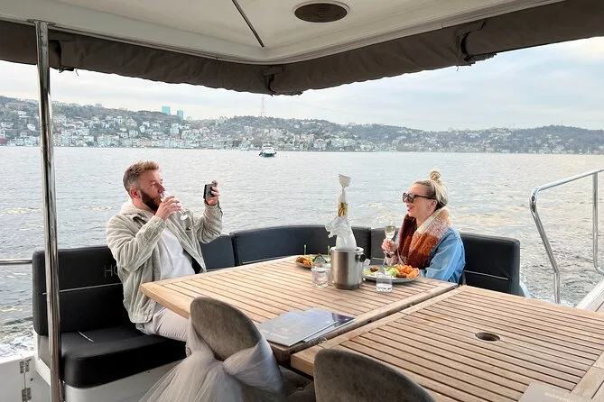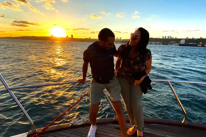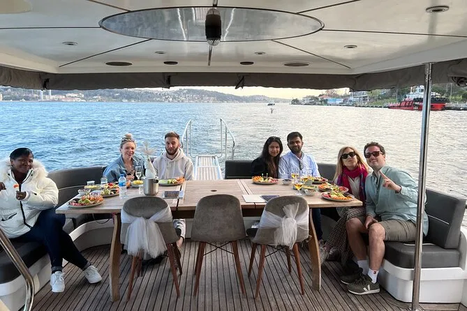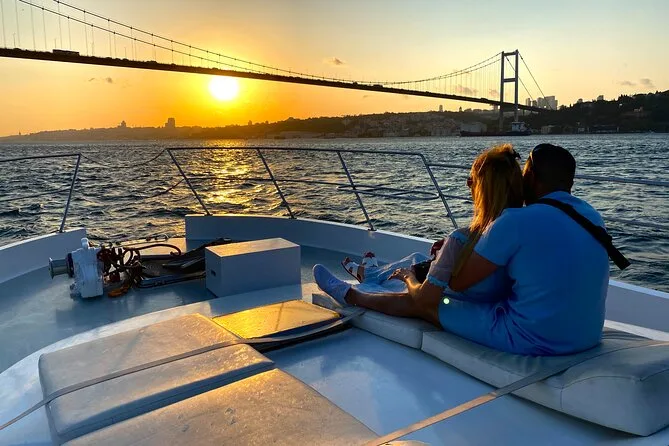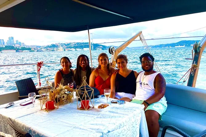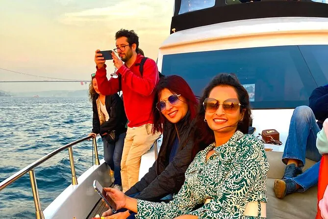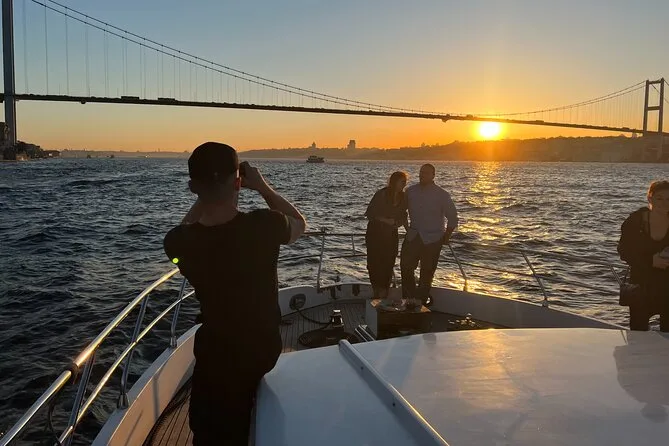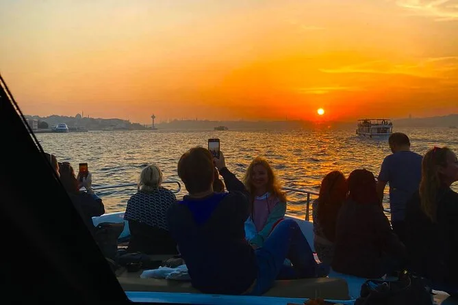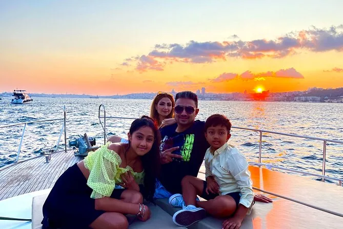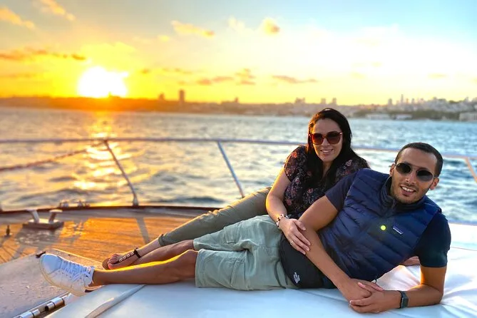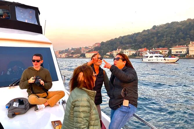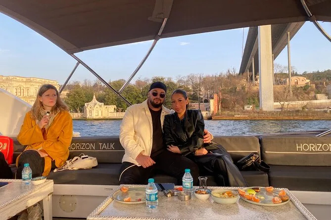 Dein Abend beginnt an Bord einer komfortablen Luxusyacht, die den Bosporus entlangfährt. Ein erfahrener lokaler Guide erzählt dir spannende Geschichten zu den berühmten Sehenswürdigkeiten. Du bekommst täglich frisch zubereitete Obstplatten, leckere Canapés und Baklava-Kekse serviert, dazu türkischen Tee oder Kaffee sowie erfrischende Getränke wie hausgemachte Limonade im Sommer oder frischen Saft im Winter – alles mit Blick auf Paläste und Brücken, bevor die Tour nach Sonnenuntergang zurückkehrt.