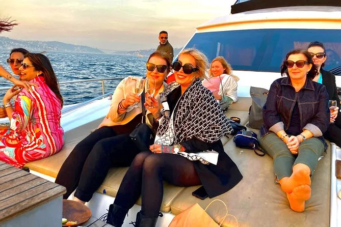 Ich hätte nicht gedacht, dass die Luft so sehr nach Meer riecht – nicht wirklich salzig, eher dieses kühle Gefühl, das man in Istanbul spürt, wenn der Tag langsam in den Abend übergeht. Kaum waren wir an Bord der Yacht, reichte uns unsere Guide Sibel ein Glas mit etwas Süßem und Frischem (sie nannte es demirhindi şerbeti – ich hab’s wahrscheinlich falsch ausgesprochen). Das Boot wirkte anfangs fast zu schick für mich, alles aus Glas und mit weichen Polstern, doch dann lachte jemand über eine Möwe, die knapp vorbeiflog, und die Stimmung wurde locker. Wir waren etwa zwanzig Leute, alle still und fasziniert, wie die Stadt langsam in ein warmes Orange getaucht wurde.