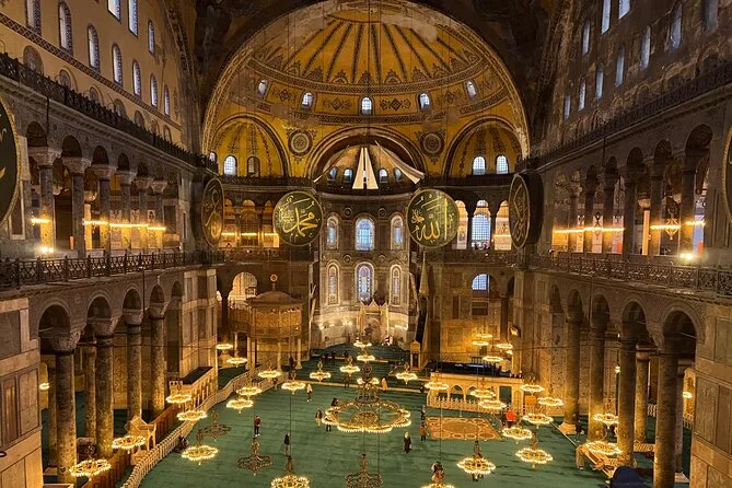 Dein Tag startet mit Abholung an zentralen Hotels oder dem Kreuzfahrthafen Galataport durch deinen erfahrenen lokalen Guide; inklusive sind Fast-Track-Tickets für Hagia Sophia, Topkapi-Palast und Basilika-Zisterne, Zeit zum Stöbern in türkischen Handwerksläden und alle organisatorischen Details – so kannst du dich voll und ganz auf die Geschichte Istanbuls und deine Feilscherei konzentrieren.