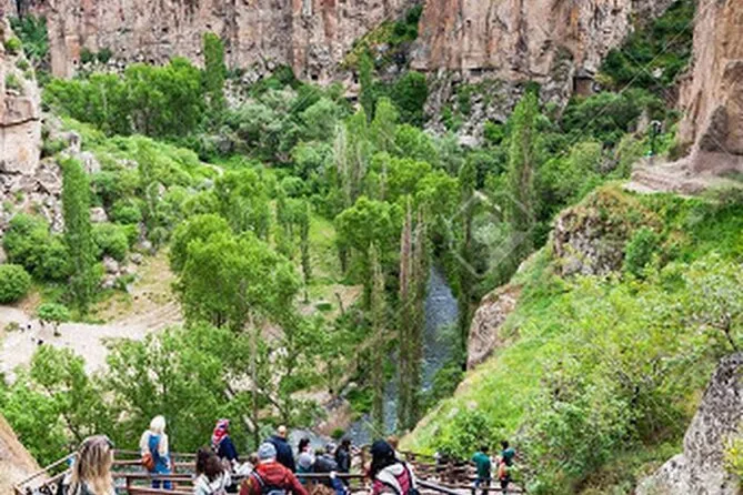 Die Tour dauert den ganzen Tag mit mehreren Stopps, darunter Derinkuyu-Unterstadt, Wanderung im Ihlara-Tal, Mittagspause, Besuch am Nar-See und Selime Kloster.