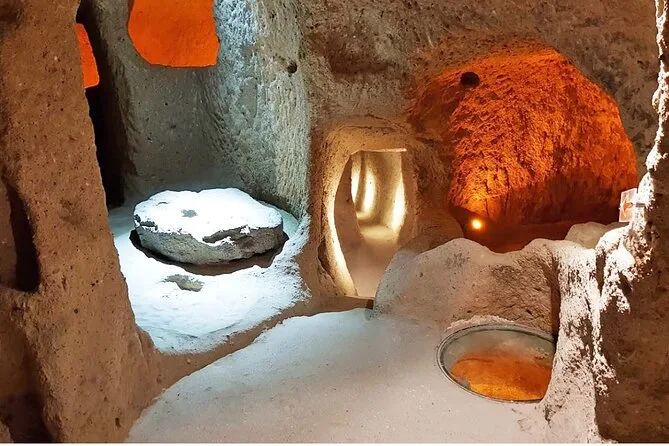Dein Tag beinhaltet privaten Transport vom Hotel in Kappadokien, Eintrittskarten für alle Sehenswürdigkeiten (inklusive Kaymakli), Parkgebühren sowie ein Mittagessen mit regionalen Spezialitäten am Flussufer, bevor ihr gemeinsam entspannt zurückfahrt.