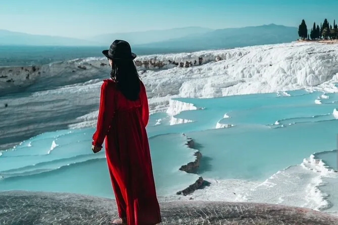 Dein Tag umfasst die Abholung und Rückfahrt im klimatisierten Fahrzeug, Eintrittskarten für Pamukkale und Hierapolis, eine Führung mit einem professionellen lokalen Guide, der spannende Geschichten erzählt, sowie ein Buffet-Mittagessen in einem nahegelegenen Restaurant, bevor es abends zurück nach Antalya geht.