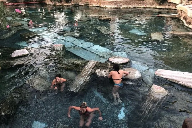 Du hast etwa 1,5 Stunden freie Zeit an den Travertinen von Pamukkale.
