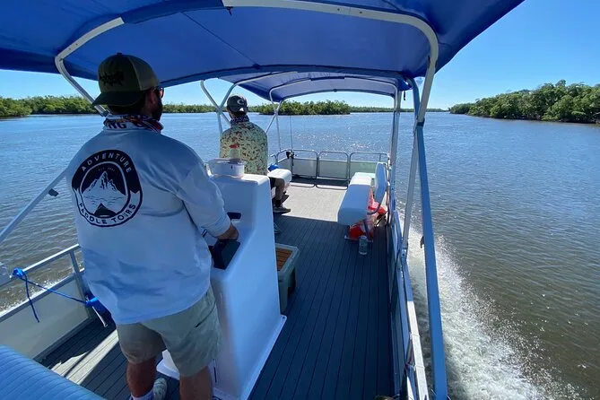 Dein Tag beginnt mit dem Treffen deines US Coast Guard lizenzierten Kapitäns am Port of the Islands Hotel (mit Zeit für Einkäufe), danach geht’s auf ein maßgeschneidertes Pontonboot durch Mangroven und offene Gewässer. Ferngläser sind dabei, um Tiere besser zu entdecken. Du steigst auf eine unbewohnte Insel im Rookery Bay Reserve aus. Für Familien gibt es alle nötigen Sicherheitsausrüstungen, inklusive Babyschalen bei Bedarf.