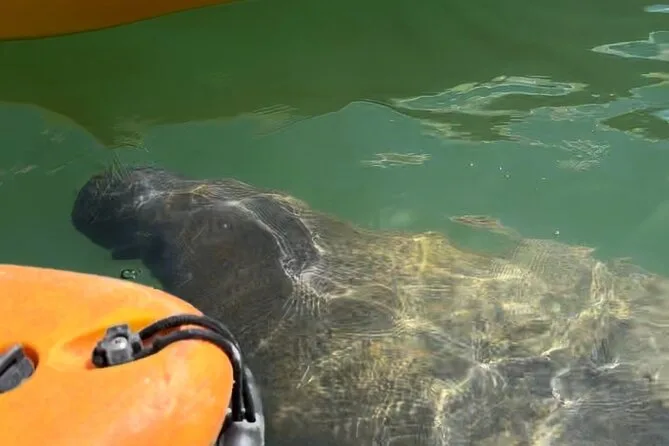 Das Wichtigste hier ist wirklich die „Manatee-Entdeckungstour“, denn genau so fühlte es sich an: sanftes Suchen, kein Hetzen. Immer wenn wir die großen grauen Schatten unter unseren Booten sahen, hielten wir still. Jamie zeigte uns Narben auf dem Rücken eines Manatees und erzählte, dass sie von Bootsschrauben stammen – ein ernüchternder Gedanke, der mir im Kopf blieb. Kurz tauchten auch Delfine auf, und ich schwöre, einer hat uns zugezwinkert, bevor er wieder verschwand.