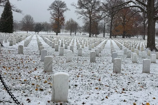 Dein Tag beinhaltet eine 2–2,5-stündige geführte Tour durch den Arlington Nationalfriedhof mit Stopps an Bürgerkriegsgraebern, bedeutenden Gräbern wie denen der Kennedy-Familie, Eintritt zu Denkmälern wie dem USS Maine Mast Memorial und dem Wachwechsel am Grab des Unbekannten Soldaten – alles begleitet von einem erfahrenen lokalen Guide, der dich nach der Sicherheitskontrolle beim Welcome Center erwartet.
