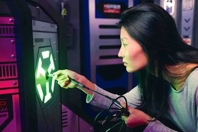Ich entschied mich für Cosmic Crisis, weil mein Cousin total auf Weltraum steht, aber ehrlich gesagt klangen alle sechs Spiele richtig spannend. Es gibt eins, bei dem man in Kalifornien Gold finden soll, und ein anderes, bei dem man aus dem Gefängnis ausbrechen muss – das soll das schwerste sein. Wir landeten mit zwei Fremden im Team, die sich spontan dazugesellten (privat buchen geht natürlich auch), und es war echt lustig, wie schnell wir zusammenwuchsen. Einmal rief jemand so laut einen Hinweis raus, dass die Leute im Nebenraum es bestimmt gehört haben. Die Rätsel sind clever, aber nicht unmöglich – wobei ich viel zu lange an einem Farbmuster knobelte, das sich später als… naja, ziemlich offensichtlich herausstellte.