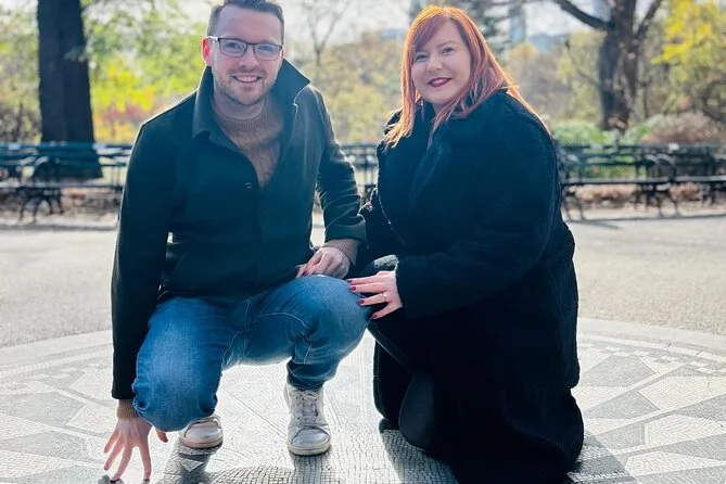 Wir fuhren am Central Park Carousel vorbei (die Musik war leise, aber eingängig) und machten einen kurzen Fotostopp an der Gapstow Bridge – ehrlich gesagt sah sie sogar noch schöner aus als in den Hochzeitsfotos, die man online sieht. Die Luft roch leicht nach gerösteten Nüssen von einem Verkäufer in der Nähe. Bei Strawberry Fields sang eine Gruppe leise „Imagine“. Ich versuchte mitzusingen, verpasste aber wohl die Hälfte der Worte; niemand störte sich daran. Irgendwie macht es etwas mit einem, John Lennons Gedenkstätte mit Fremden zu sehen – New York fühlt sich plötzlich viel kleiner an.